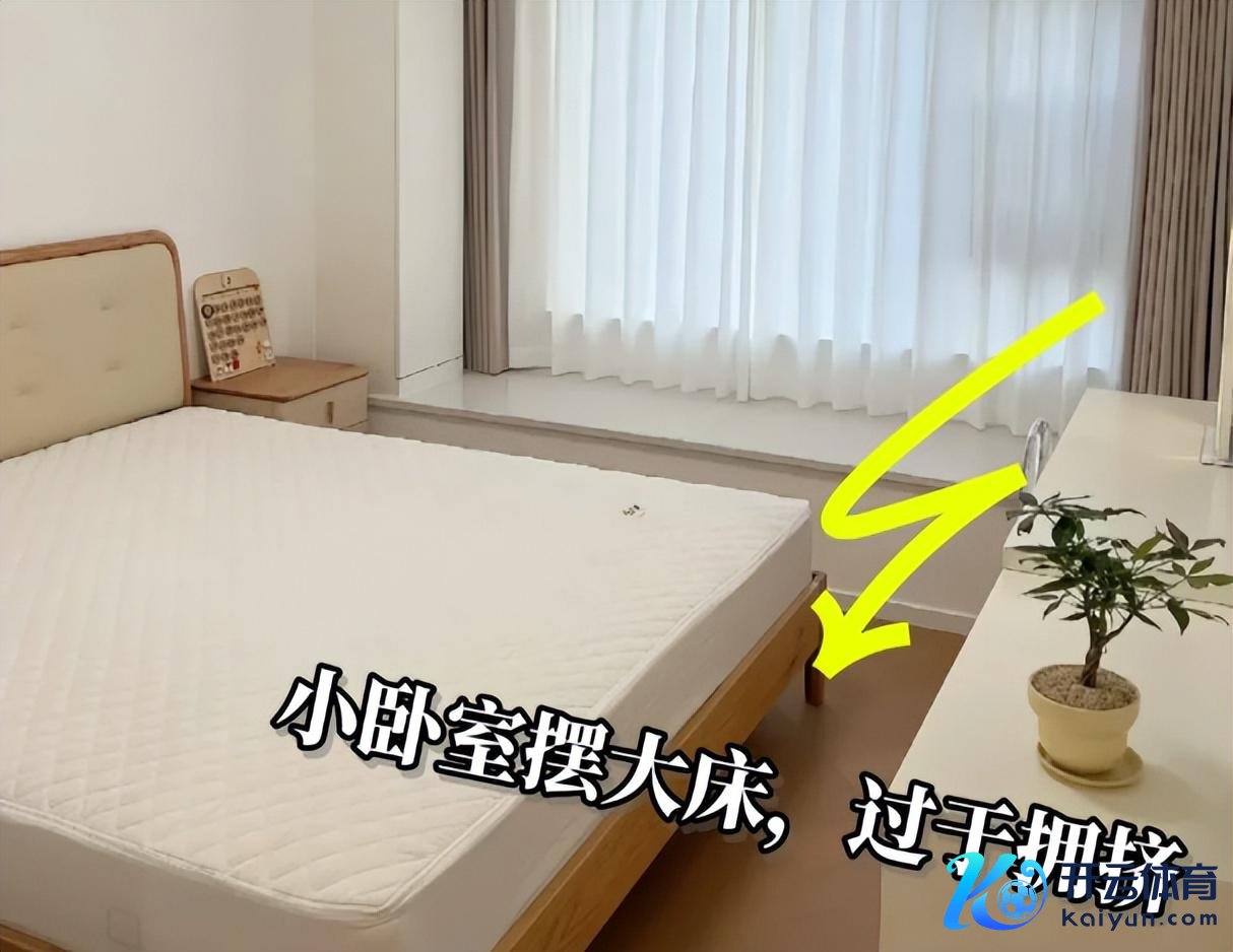 除非你将双东谈主床靠一边才不错,而放小的卧室床就无谓惦念有这个问题,衣柜普通掀开,很便捷。