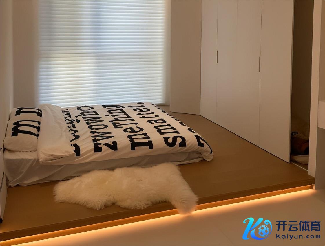 在卧室内部作念地台瞎想,它能省俭不少空间,这就径直抛开了床架,径直在上头铺了床垫!