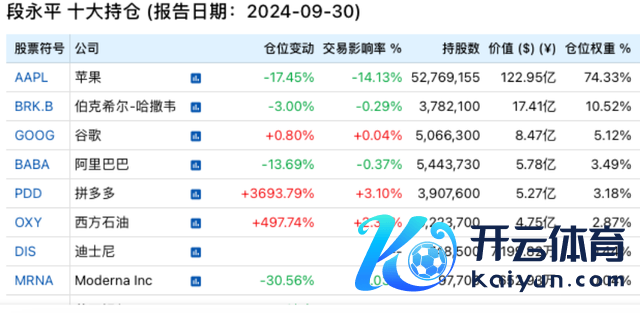 日前,好意思股机构投资者三季度13F抓仓的暴露收尾,段永平最新的抓仓变动情况也得回曝光。