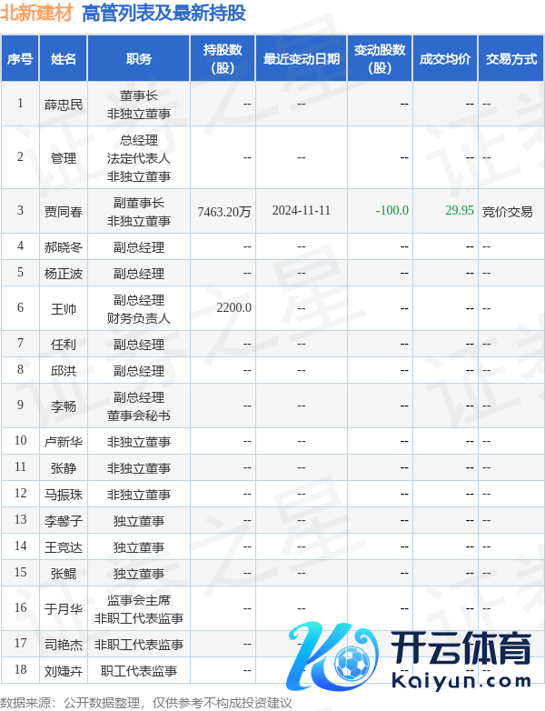 北新建材近半年内的董监高及中枢本事东说念主员增减捏细目如下: