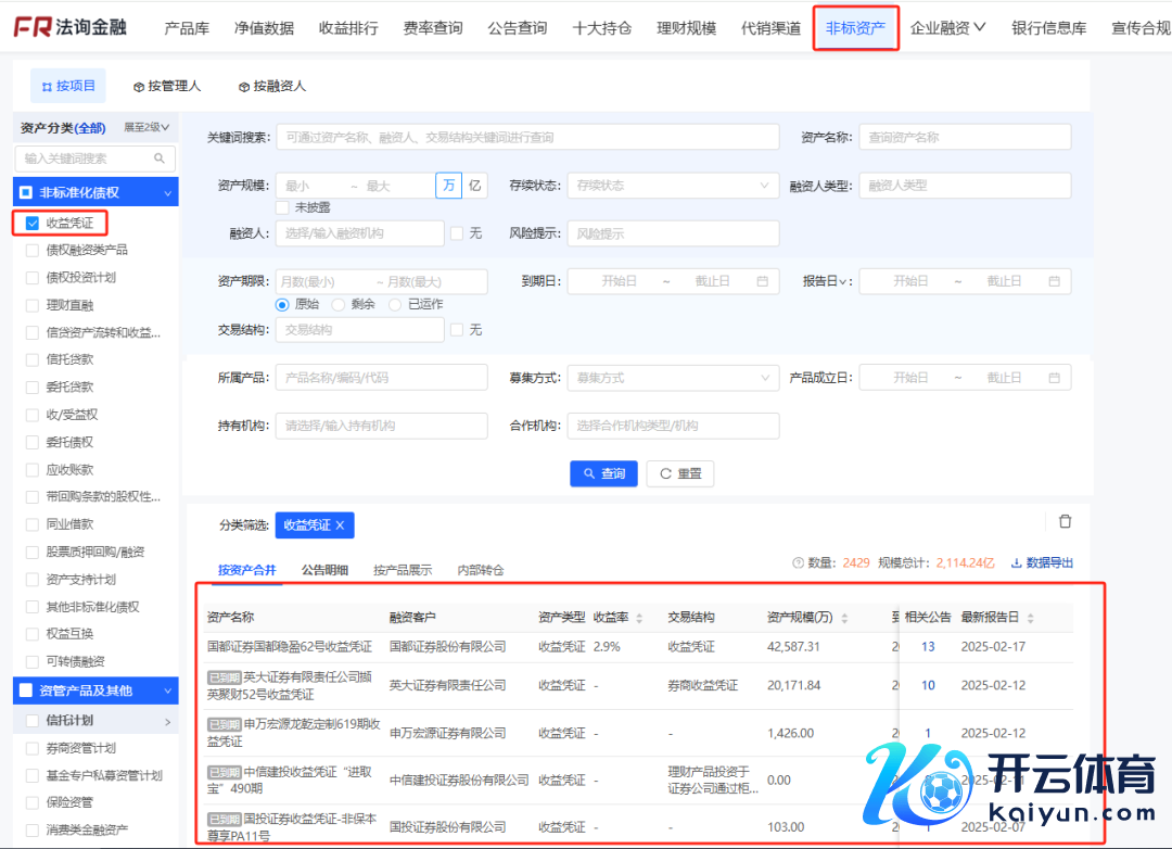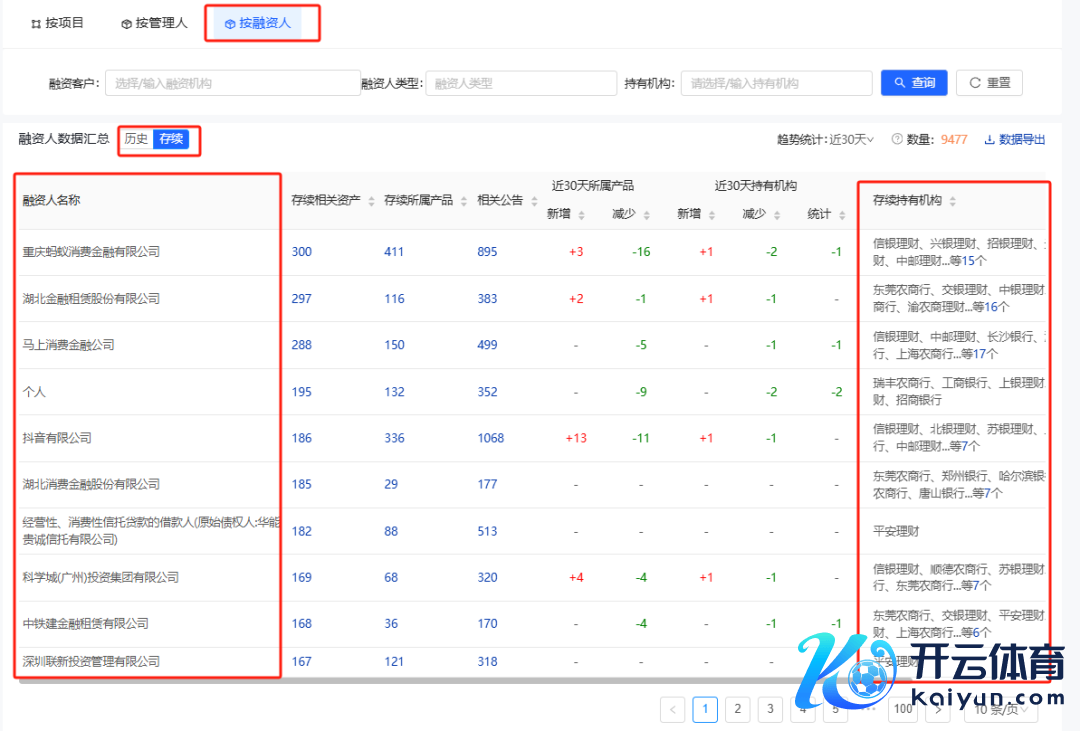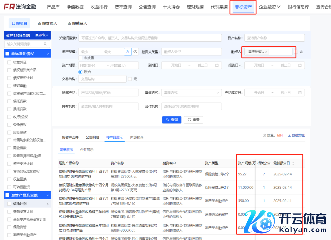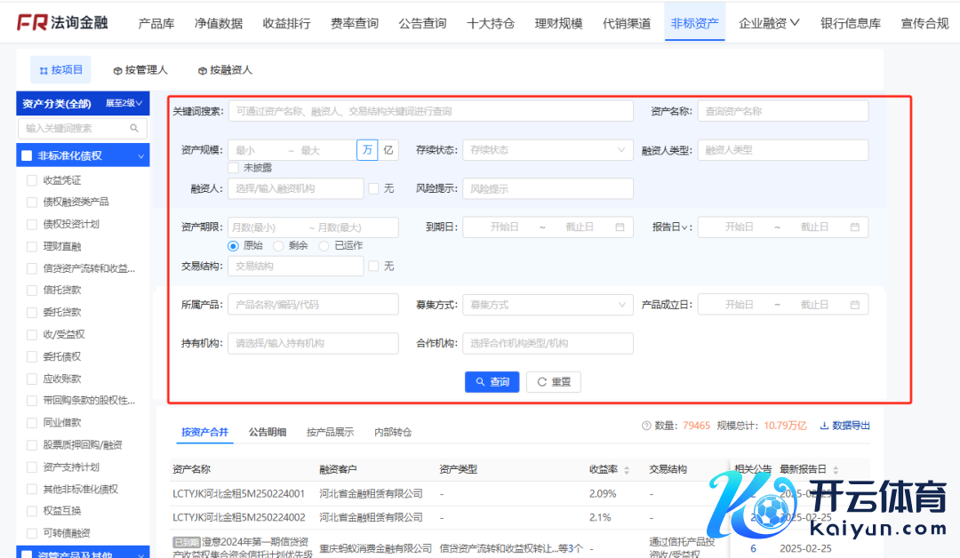 4. 拆分公告查询索引、按不同筛选形状查询,相沿表情称呼、融资客户、产物敷陈日、所属产物、合手有机构、钞票限制;也可按不同分类作念定制筛选