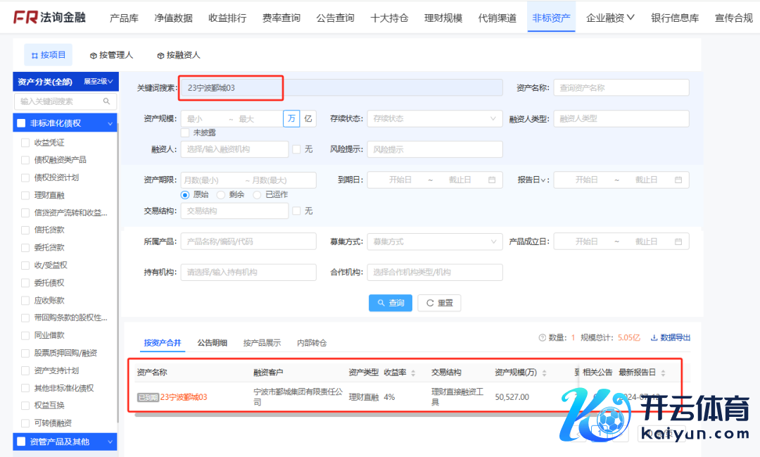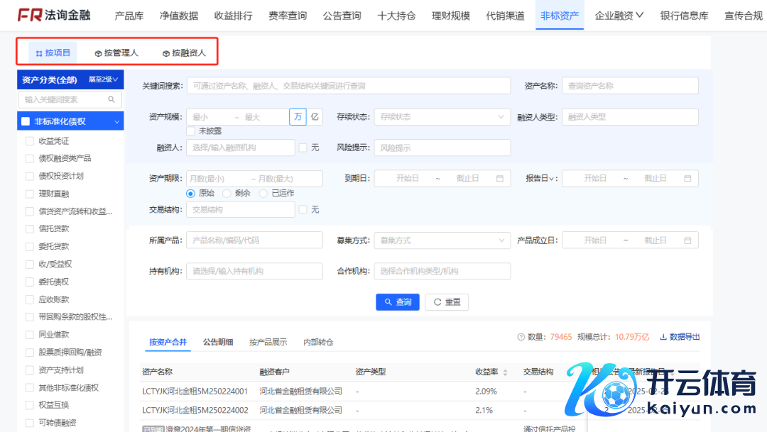 可按钞票称呼、融资客户、敷陈日、所属产物、合手有机构、钞票限制、存续情状、钞票期限、走动结构、非标钞票所属产物等作念筛选