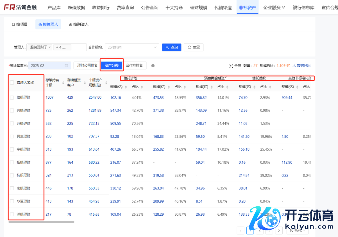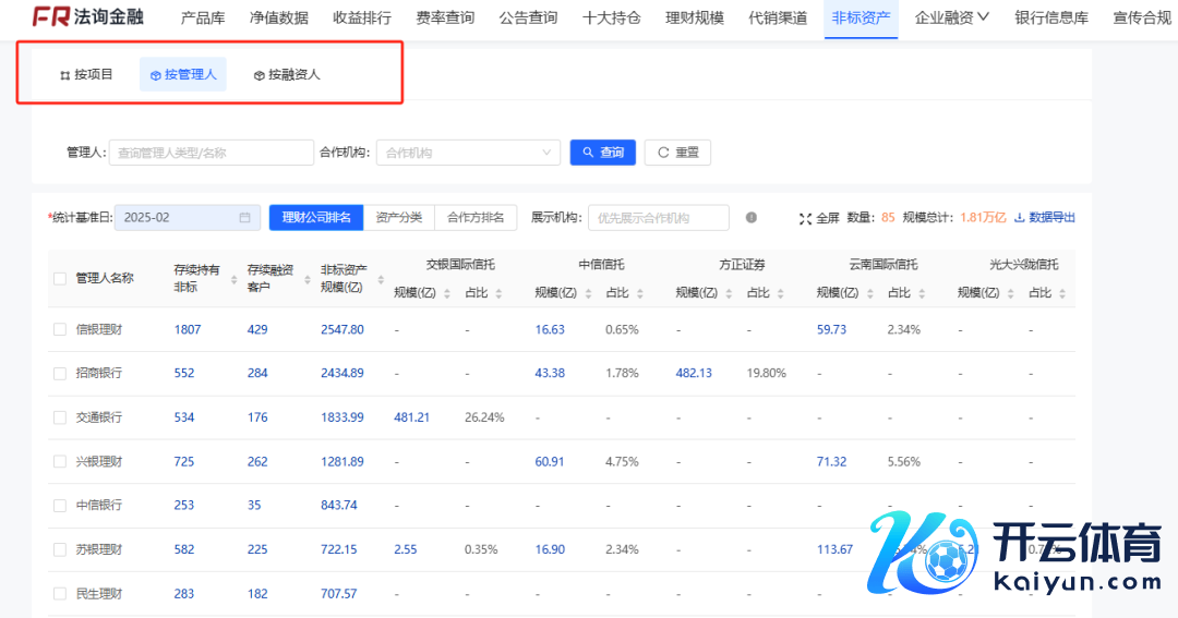 7. 按照顾东谈主多角度查询,可查询银行搭理机构合手有非标钞票限制排行,合手有不同投资勾搭机构非标钞票限制;可查询银行搭理机构合手有不同非标钞票类型限制;还不错投资勾搭机构视角进行汇总排行