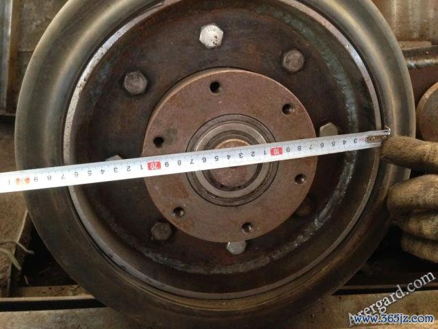负重轮直径267mm,钢制,轮子外缘带有一圈橡胶,橡胶层厚度40mm,宽度70mm