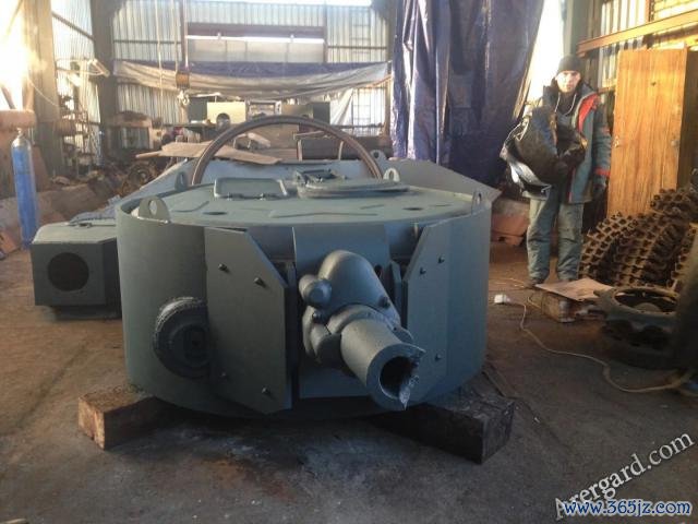 这批负重轮是再行制作的,这是全车除驾驶员模样板之外,唯二的非原厂配件,原版的负重轮直径350mm,但挖掘出来的负重轮因为年代问题,橡胶老化零碎,轴承也全部朽烂,仍是无法使用