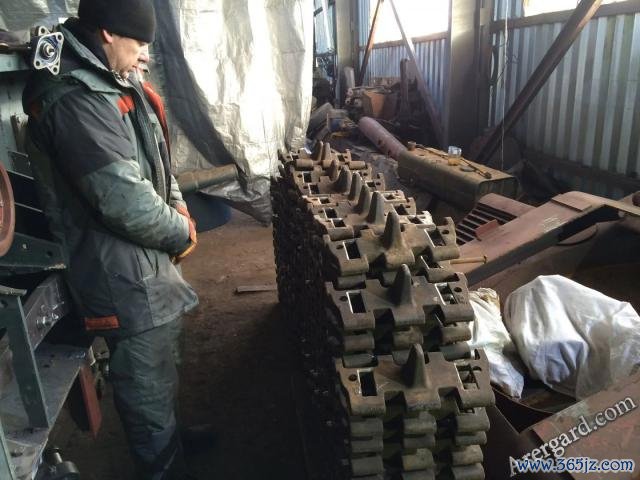 每侧履带由121块履带板拼接而成,单块履带宽度380mm,高度130mm,履带全长15800mm,单条履带质地在1440公斤傍边