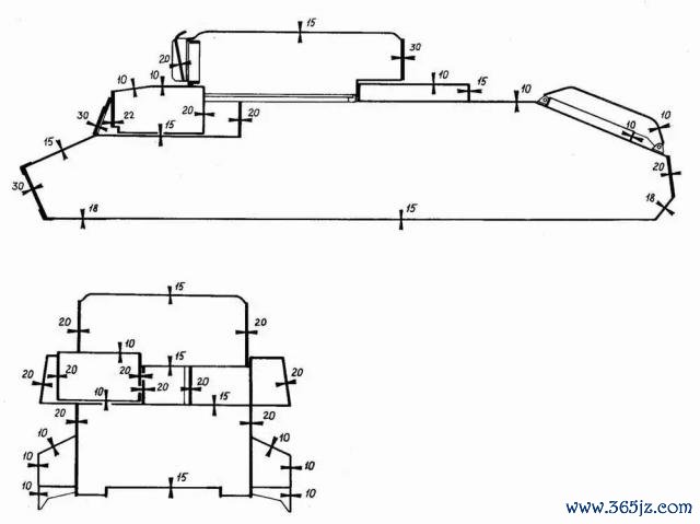 各部位的装甲厚度标注如下: