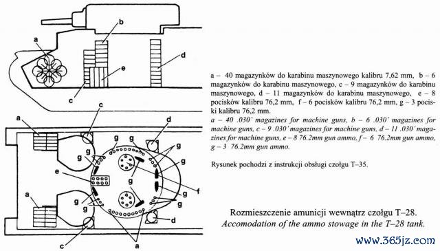其中abcd是机枪的储弹架,分歧存储了40个弹匣、6个弹匣、9个弹匣、11个弹匣,所有这个词66个弹匣4158发枪弹,车体傍边双方加起来一共是8316发枪弹;efg是主炮的储弹架,分歧存储了8发、6发、3发炮弹