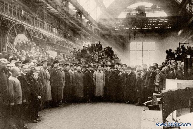 末代沙皇尼古拉二世与厂区工东说念主合影