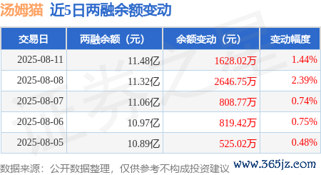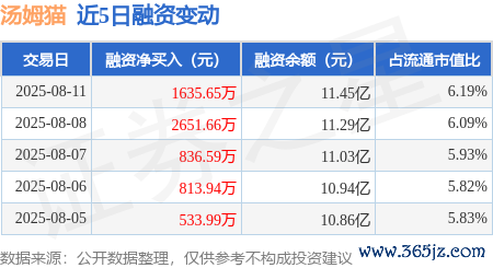 本站音书,8月11日,汤姆猫(300459)融资买入7525.98万元,融资偿还5890.33万元,融资净买入1635.65万元,融资余额11.45亿元,近3个走动日已相接净买入累计5123.9万元,近20个走动日中有11个走动日出现融资净买入。