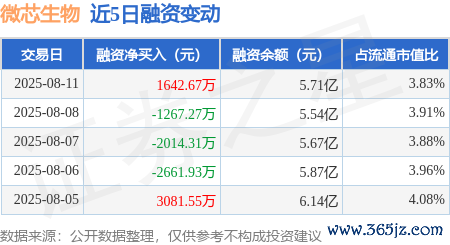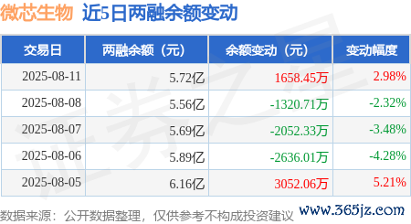 本站音书,8月11日,微芯生物(688321)融资买入5637.54万元,融资偿还3994.87万元,融资净买入1642.67万元,融资余额5.71亿元云开体育,近20个往返日中有12个往返日出现融资净买入。
